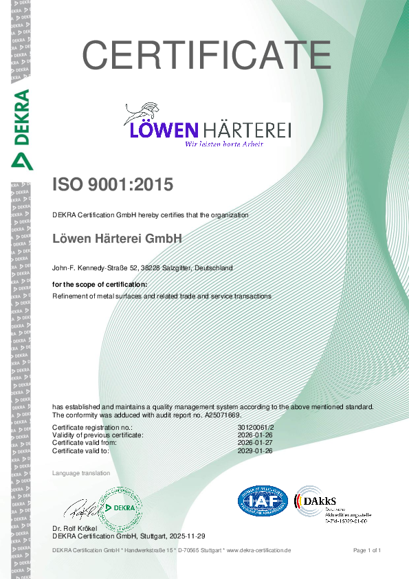 Die DEKRA als eine in 1925 gegründete deutsche Prüfgesellschaft bescheinigt uns, dass wir ab sofort für den folgenden Bereich zertifiziert sind: